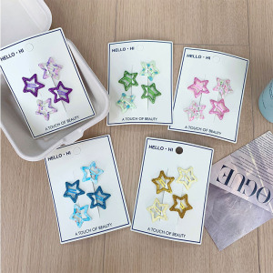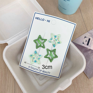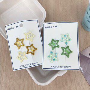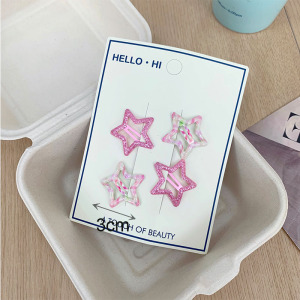 新款韩系甜美五角星葱粉发夹儿童侧边碎发夹少女多巴胺碎花刘海夹