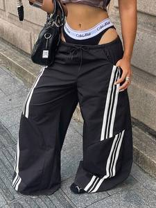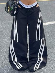 跨境美式条纹休闲裤潮牌2025新款宽松直筒阔腿高街冲锋运动长裤