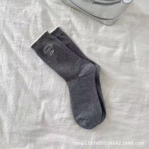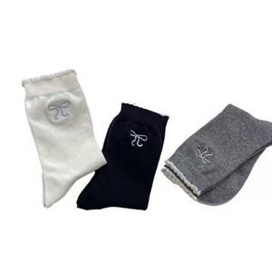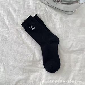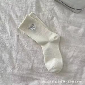 刺绣蝴蝶结灰色袜子花边银丝诸暨袜子女韩国银丝透气棉袜中筒女袜