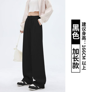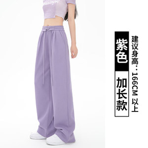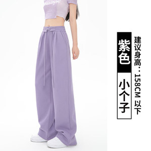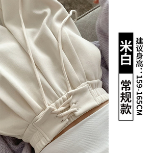 运动裤女秋季2025新款休闲宽松高腰直筒卫裤小个子白色窄版阔腿裤