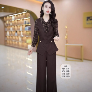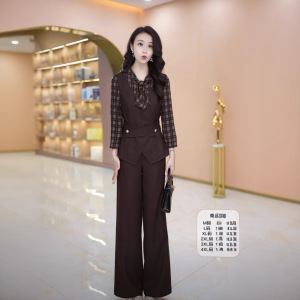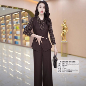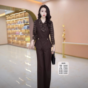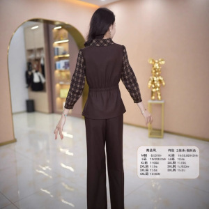 竹纤维两件套2025气质秋季新款女显瘦拼接上衣洋气直筒裤时尚套装