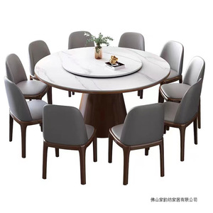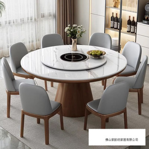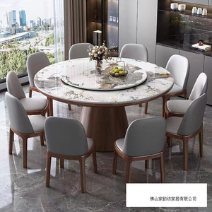 岩板餐桌实木家用圆桌带转盘圆形餐桌酒店1.8米餐厅桌椅岩板饭桌