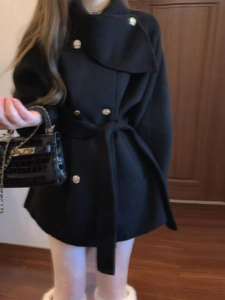 大衣外套女黑色赫本风短款毛呢斗篷秋冬季加厚2025新款时尚感呢子