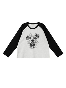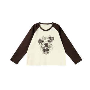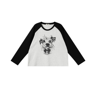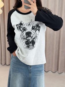 子元2025年秋季大码女装胖MM加肥200斤卡通小狗插肩长袖T恤女9117
