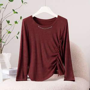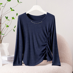 小众抽绳设计感长袖T恤女2025秋新款修身显瘦减龄圆领打底衫上衣