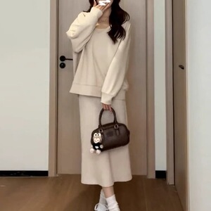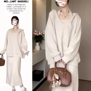 套装女2025早秋季新款入秋长袖挂脖吊带连衣裙子女装气质长裙套装