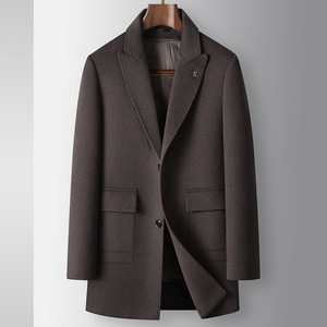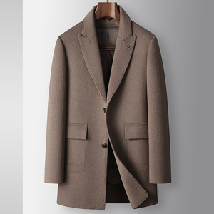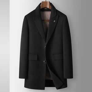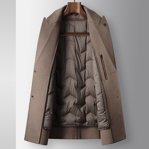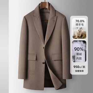 男式大衣秋冬中长款戗驳领脱卸鹅绒内胆青年高奢商务羊毛风衣外套