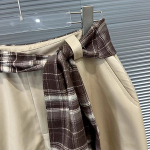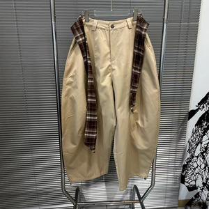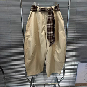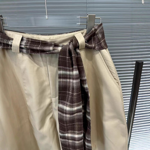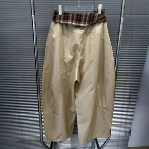 2025年早秋新款美式格纹绑带宽松卡其色弯刀裤阔腿裤休闲裤