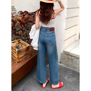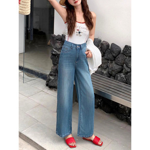 2025秋季新款冰丝软牛仔裤阔腿裤女超薄秋款小个子天丝九分直筒裤