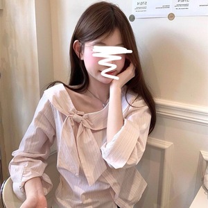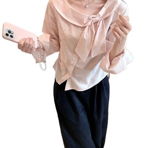 2025秋季新款不规则小众减龄上衣甜美蝴蝶结设计感长袖条纹衬衫女