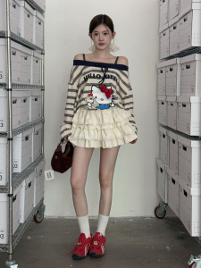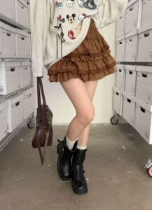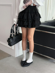 ME KAKAMEE十三行秋韩系花边拼接丝绒百搭蛋糕裙短裙半身裙 A2882