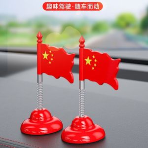 汽车弹簧摇头摆件车载装饰品国旗中控台显示屏车内创意饰品小红旗