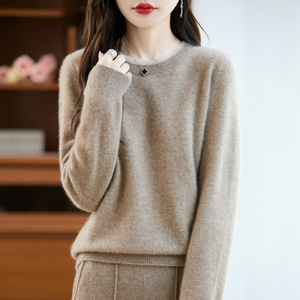 纯羊毛衫经典圆领毛衣女式套头内搭秋冬新款日常百搭软糯舒适打底