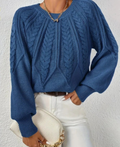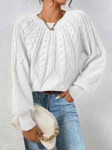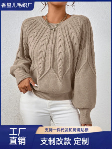 跨境亚马逊欧美套头圆领针织毛衣外贸长袖麻花秋冬百搭针织上衣女