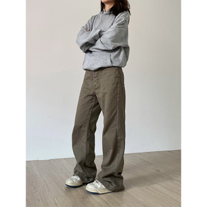 川川也美拉德美式复古水洗直筒休闲裤男女伐木简约百搭宽松裤子秋