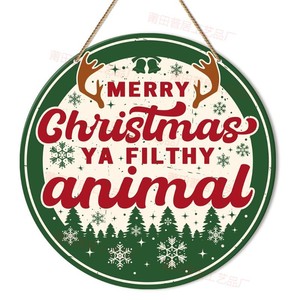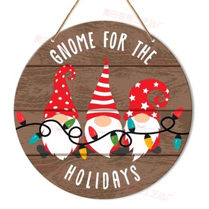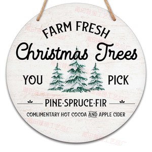 亚马逊圣诞节木质圆形门牌挂牌派对节日牌匾墙壁标牌装饰画批发