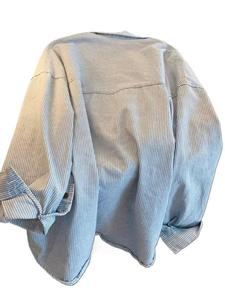 蓝色条纹长袖衬衫女春季上衣2025新款宽松设计感复古撞色外套衬衣