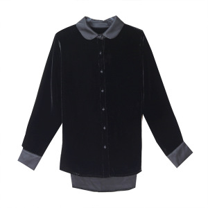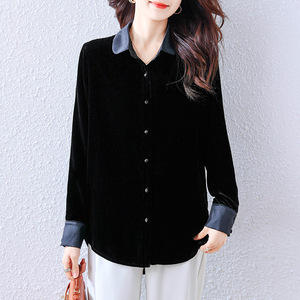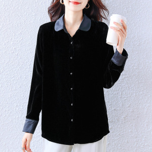 大码女装丝绒衬衣2025春秋季新款韩版气质翻领上衣