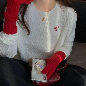 黄色低圆领针织毛衣女秋季内搭2025新款小香风上衣刺绣长袖打底衫
