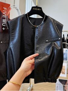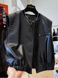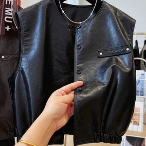 高级感咖色复古皮马甲女2025秋韩版机车叠穿小个子宽松叠穿外套