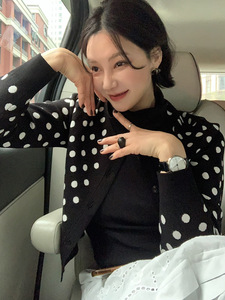现货!挚爱波点 Miu系女孩!韩系氛围感波点短款针织开衫