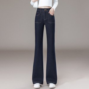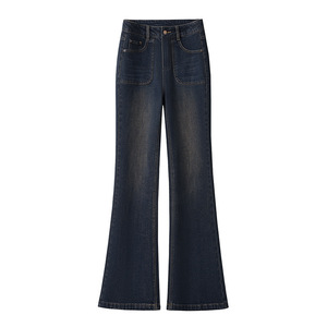 修身时尚水洗牛仔深色长裤女喇叭裤2025秋季新款高腰韩版微喇裤潮