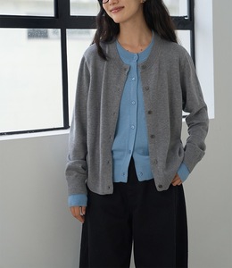 奶蓝夹心 羊毛韩系休闲复古撞色假两件毛衣针织开衫