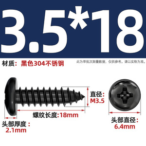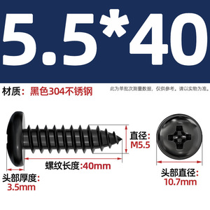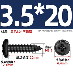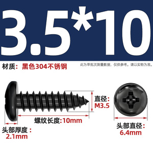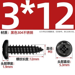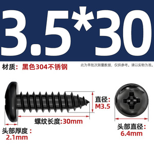 国标黑色304不锈钢十字圆头自攻螺丝钉盘头镀黑锌发黑MM2M3M4M5M6