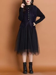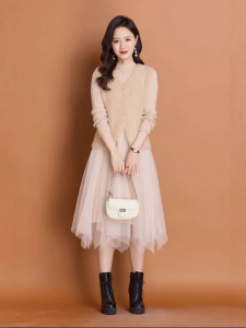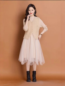 高级感气质温柔小香风两件套装裙秋冬新款马甲背心针织网纱连衣裙