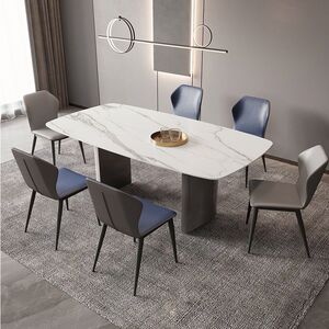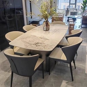 意式轻奢现代岩板客厅餐桌椅组合网红小户型亮光餐厅极简方形