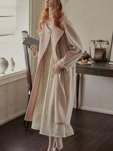 cpeie茜派ya 100%绵羊毛 慵懒风~法式复古全手工缝制双面呢大衣女