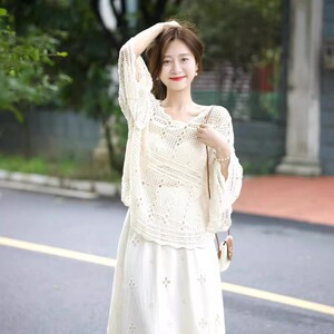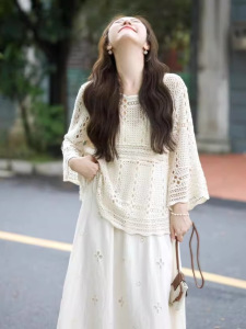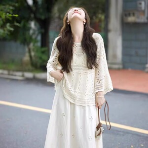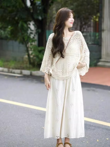 早秋搭配一整套针织镂空半身裙今年流行漂亮套装裙微胖女生连衣裙