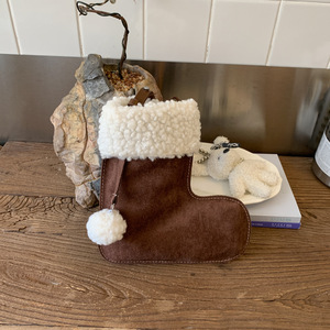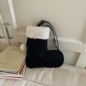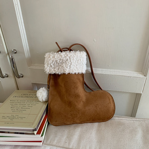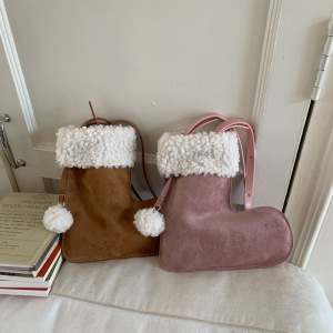 韩系鞋型包新款时尚撞色毛绒手机包复古风磨砂麂皮绒手提包斜挎包