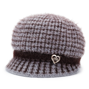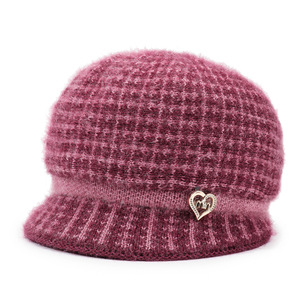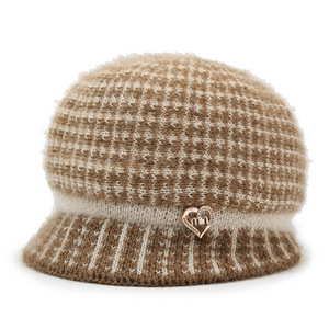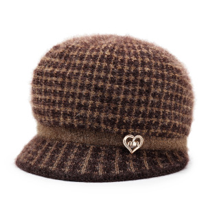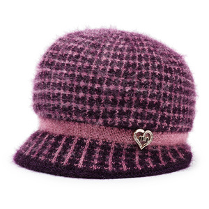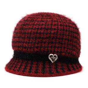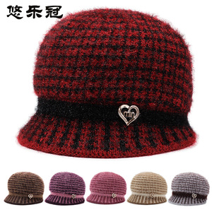 贝雷帽秋冬妈妈帽子英伦短檐户外针织帽韩版百搭加绒加厚针织帽子