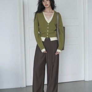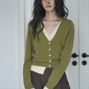 大码女装秋季假两件毛衣外套撞色领宽松针织开衫女显瘦短款新款