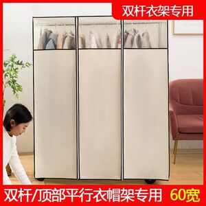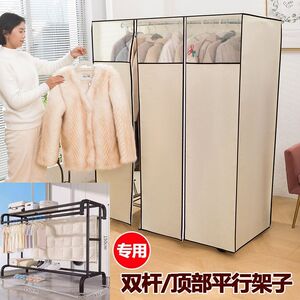 落地式晾衣架双杆防尘罩简易全包围透明衣架罩宿舍衣帽架防尘盖布