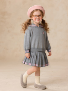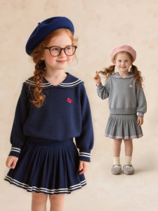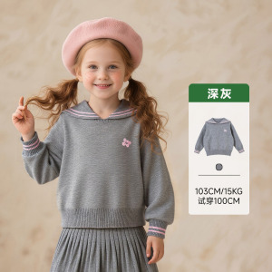 童贝童装2025年秋季新款女童针织衫套装学院风海军领针织裙套装