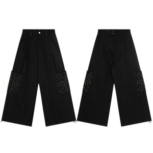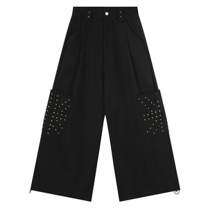 美式设计感铆钉阔腿休闲裤男女可穿秋季高街宽松休闲潮流拖地长裤