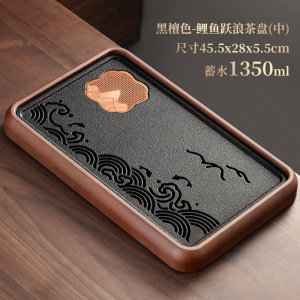 3【黑檀色45.5x28cm】中号鲤鱼跃浪茶盘1350ml