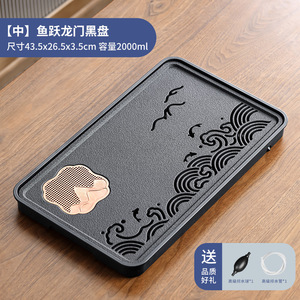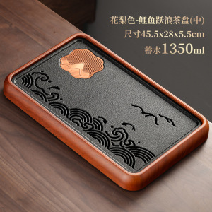 4【花梨色45.5x28cm】中号鲤鱼跃浪茶盘1350ml