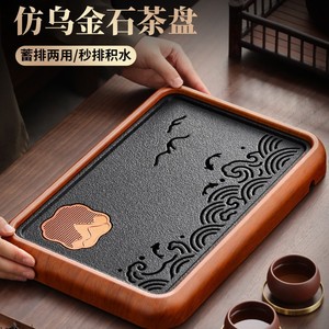 12【黑檀色39.5x26cm】小号千山飞鸟茶盘1100ml