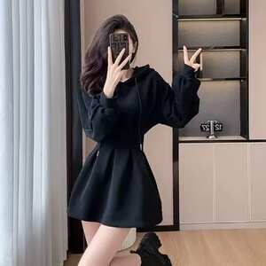 黑色辣妹显瘦高级感小个子连衣裙收腰卫衣裙秋冬季新款裙子短裙女