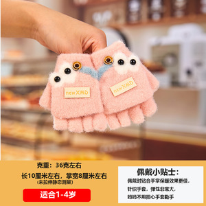 宝宝手套秋冬季男女童卡通恐龙防风保暖加厚半指小孩翻盖防寒分指