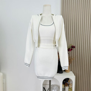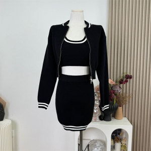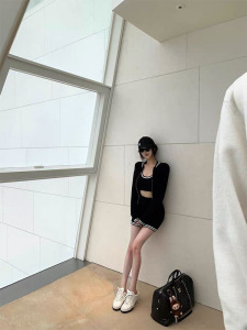 woppei 早秋通勤时髦高级感休闲显瘦百搭运动系吊带外套针织套装