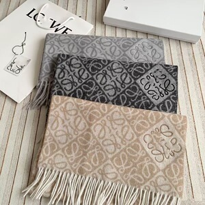 奶茶色棋盘格经典提花羊绒围巾舒适保暖刺绣女士秋冬新款百搭披肩