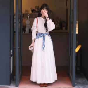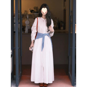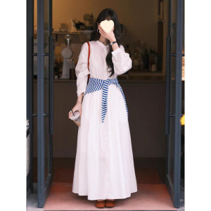 法式白色长袖衬衫连衣裙子女2025新款早秋气质高级感宽松显瘦长裙