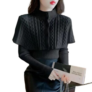 2025新款洋气麻花针织衫上衣女秋冬内搭长袖内搭两件套打底毛衣女