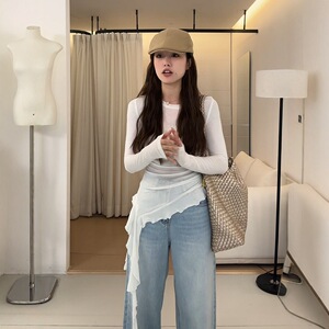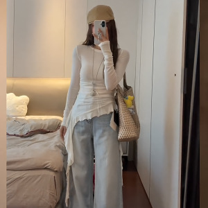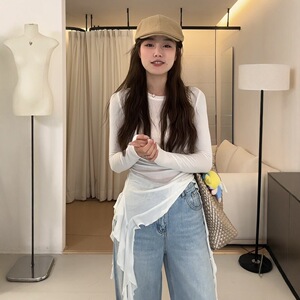 不规则设计感圆领长袖T恤女2025年春季新款洋气修身显瘦百搭上衣