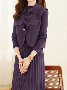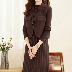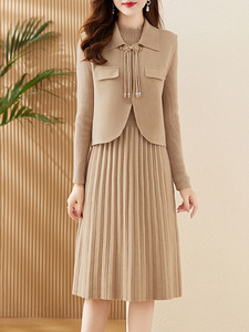 针织马甲配连衣裙两件套女2025秋冬新款气质洋气长袖毛衣裙子套装