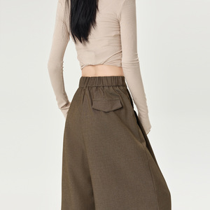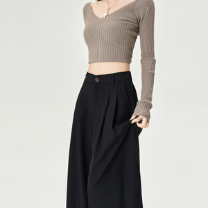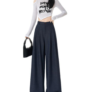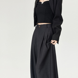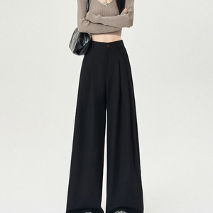 黑色西装裤女秋季2025新款松紧高腰显瘦宽松直筒垂感拖地阔腿裤